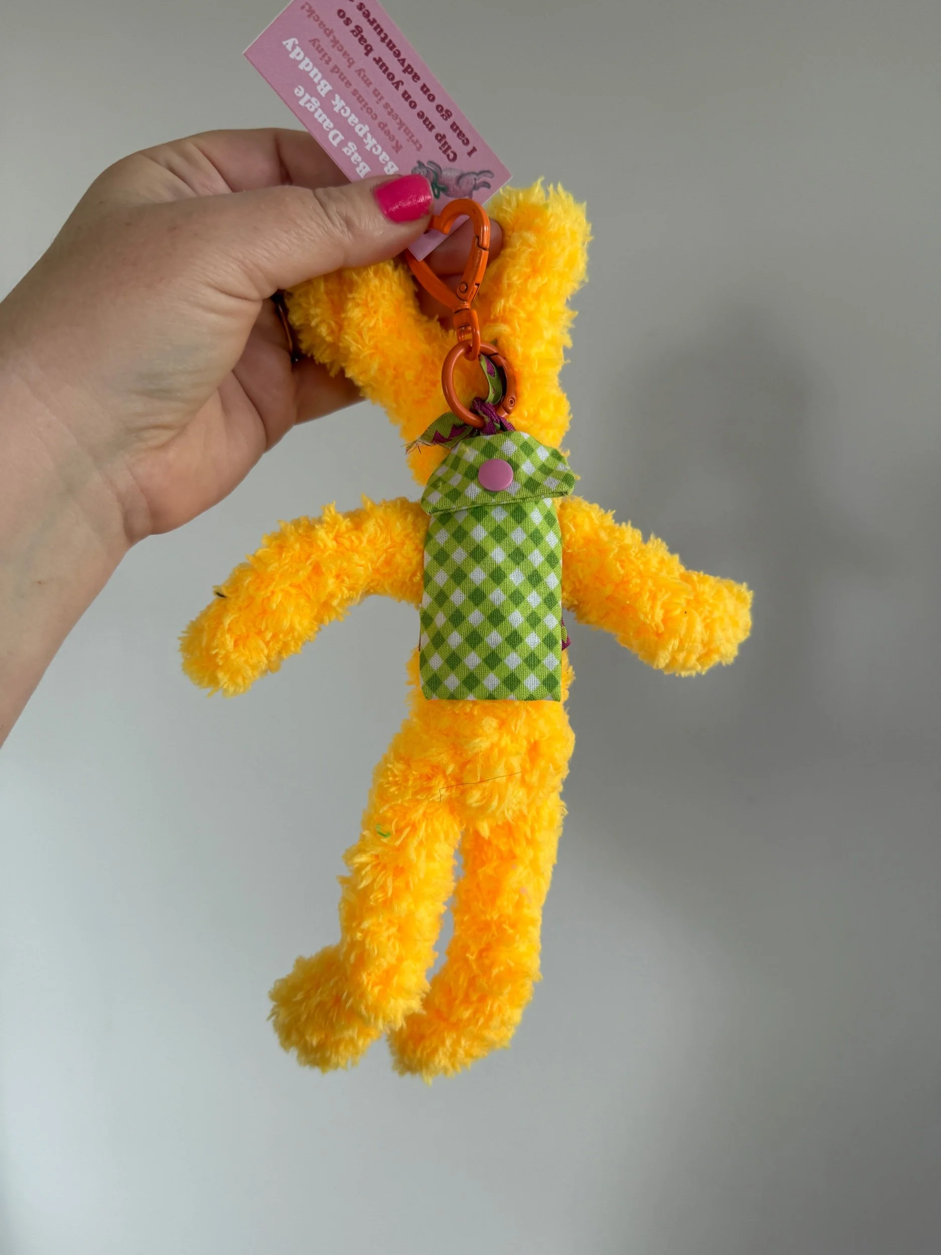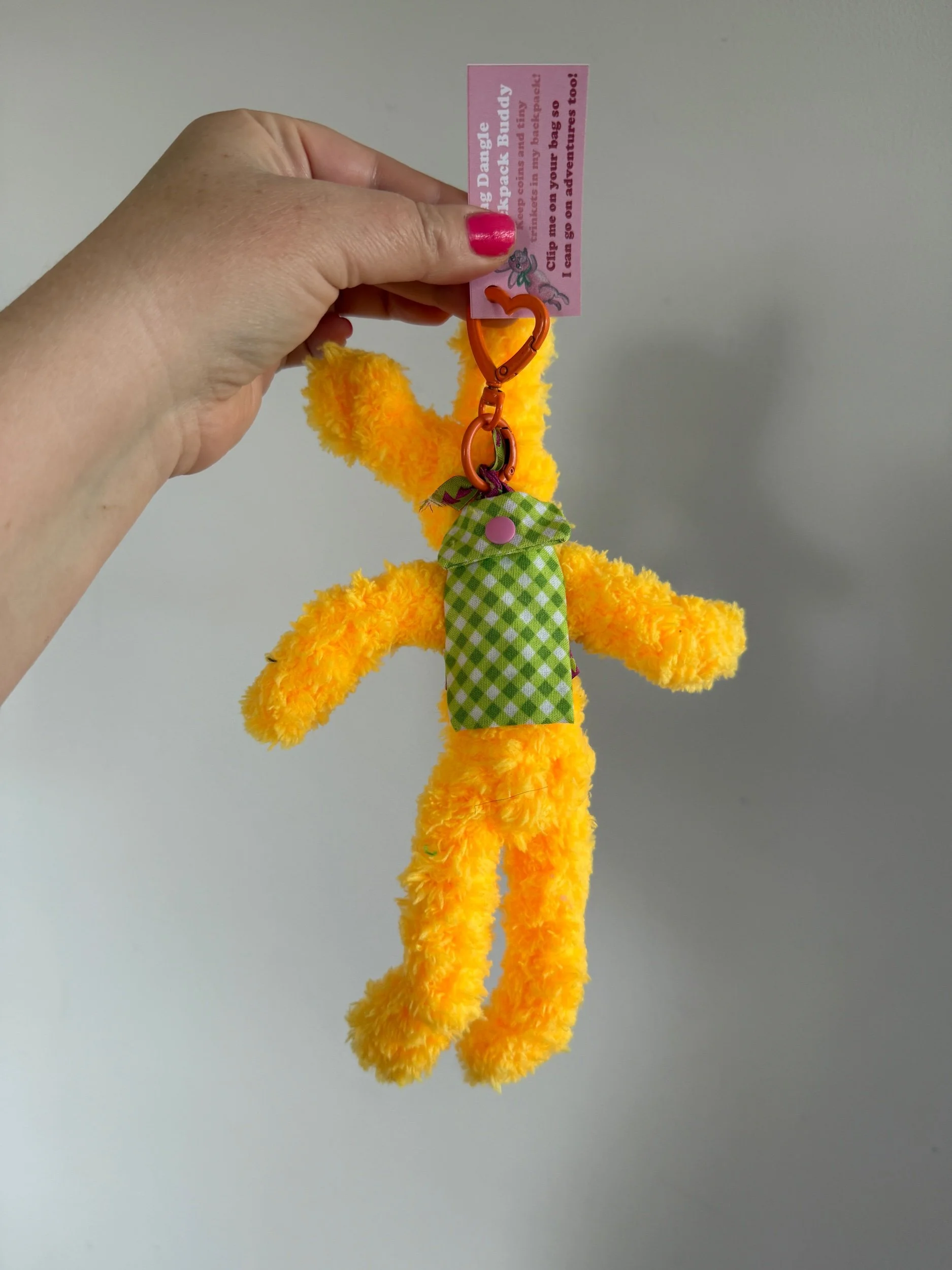 These cute little handmade chenille bag decorations are made with a tiny hand sewn backpack which opens with a press stud, meaning you can keep your coins, trinkets and a hidden message inside! Each one is one of a kind, never to be made again. Each one attaches with a keyring, and is safe and secure to take on adventures!