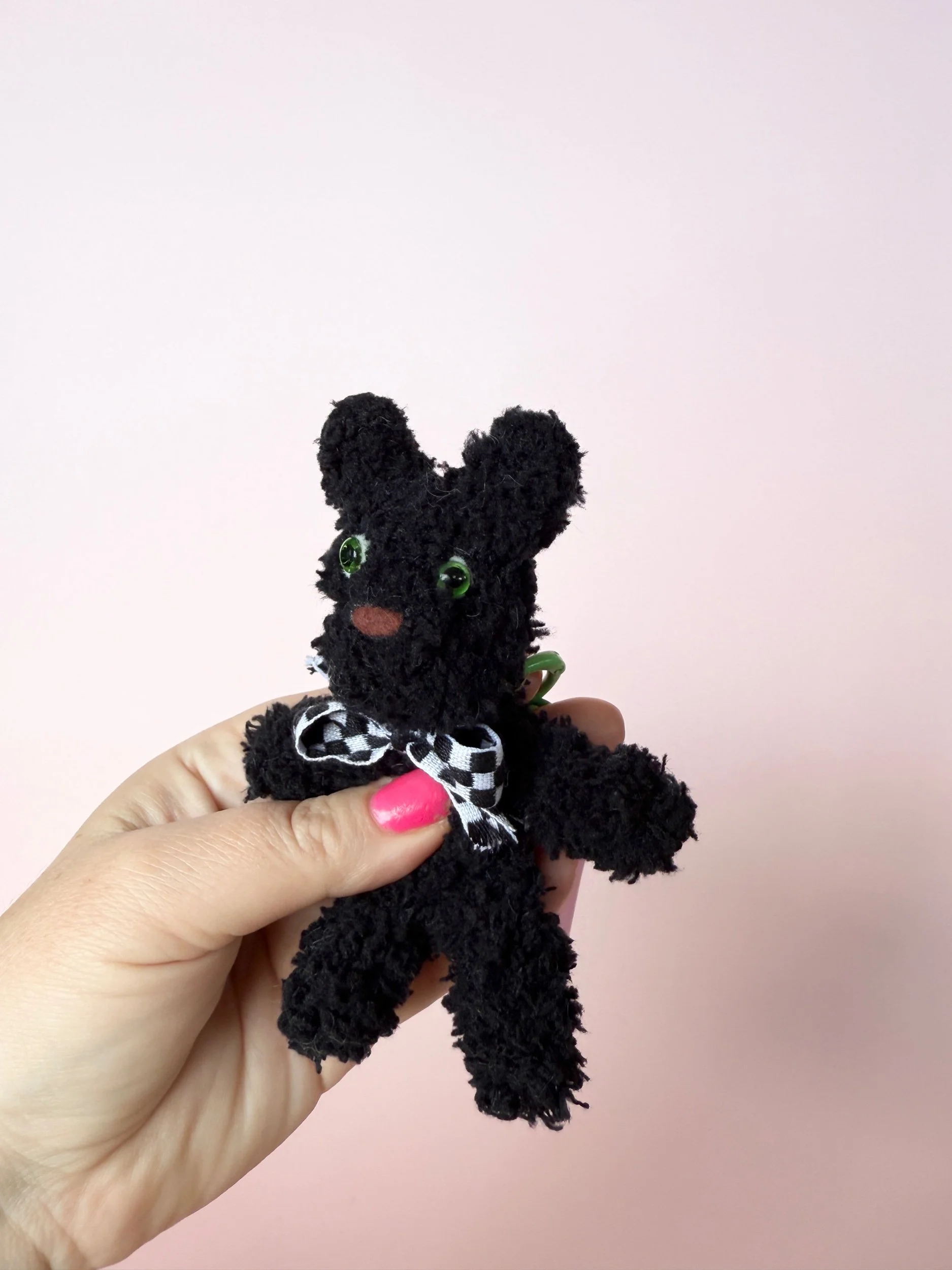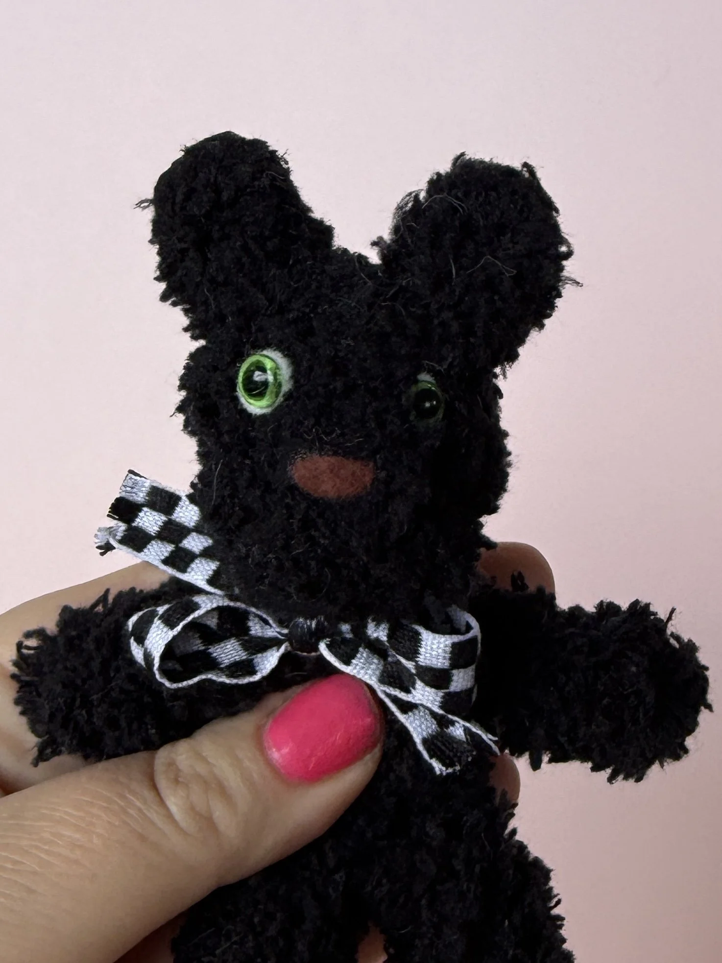 Bag Charm Mini Buddy - Black Bear with Checker Bow