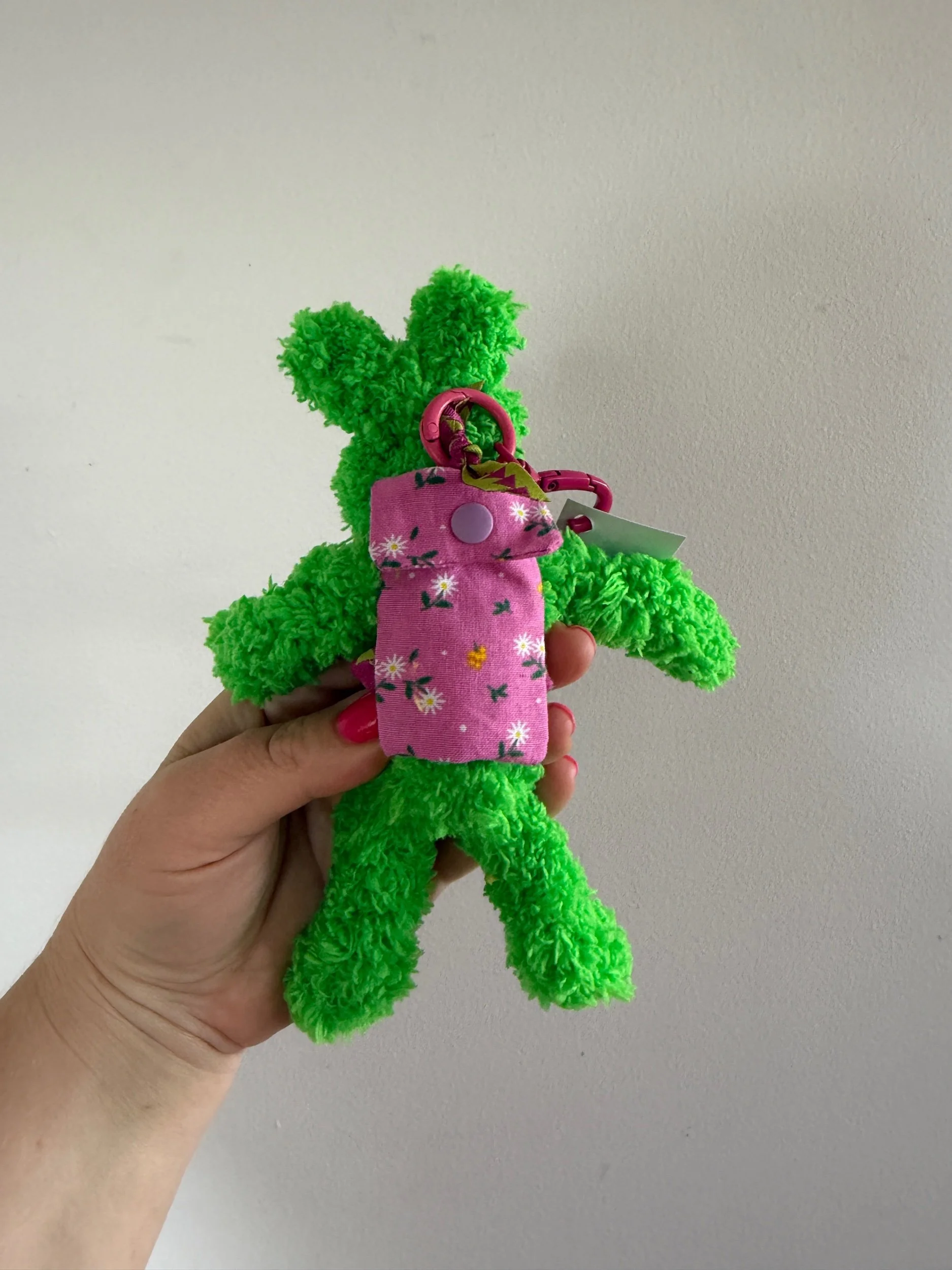 hese cute little handmade chenille bag decorations are made with a tiny hand sewn backpack which opens with a press stud, meaning you can keep your coins, trinkets and a hidden message inside! Each one is one of a kind, never to be made again. Each one attaches with a heart keyring, and it safe and secure to take on adventures!