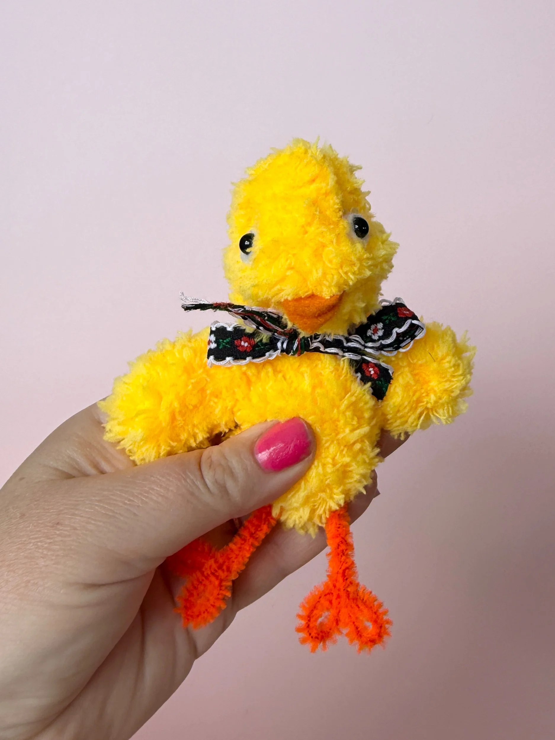 These cute little handmade chenille bag decorations are made by hand and decorated with a tiny bow tie! Each one is one of a kind, never to be made again. Each one attaches with a heart keyring, and it safe and secure to take on adventures!