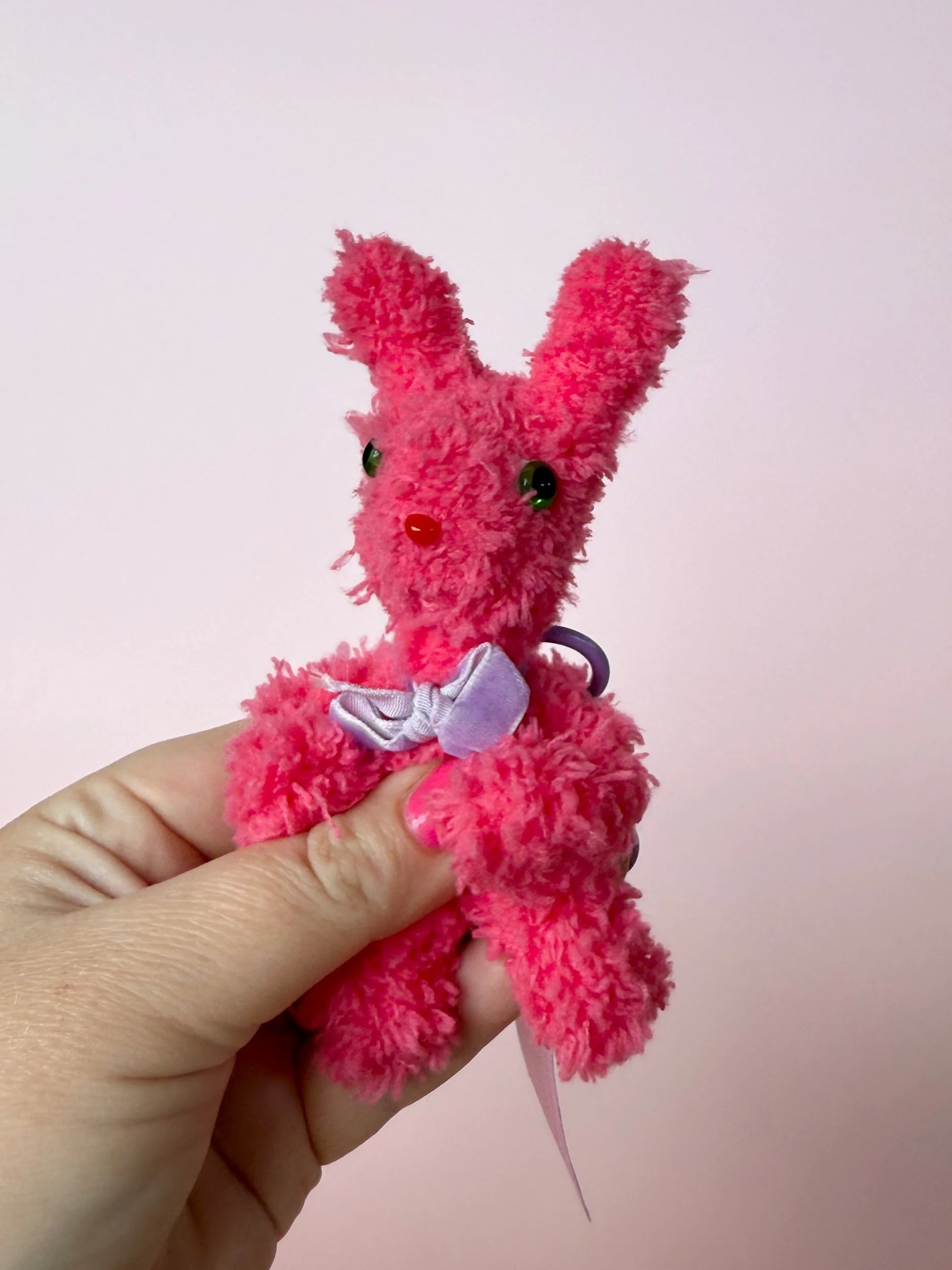These cute little handmade chenille bag decorations are made by hand and decorated with a tiny bow tie! Each one is one of a kind, never to be made again. Each one attaches with a heart keyring, and it safe and secure to take on adventures!