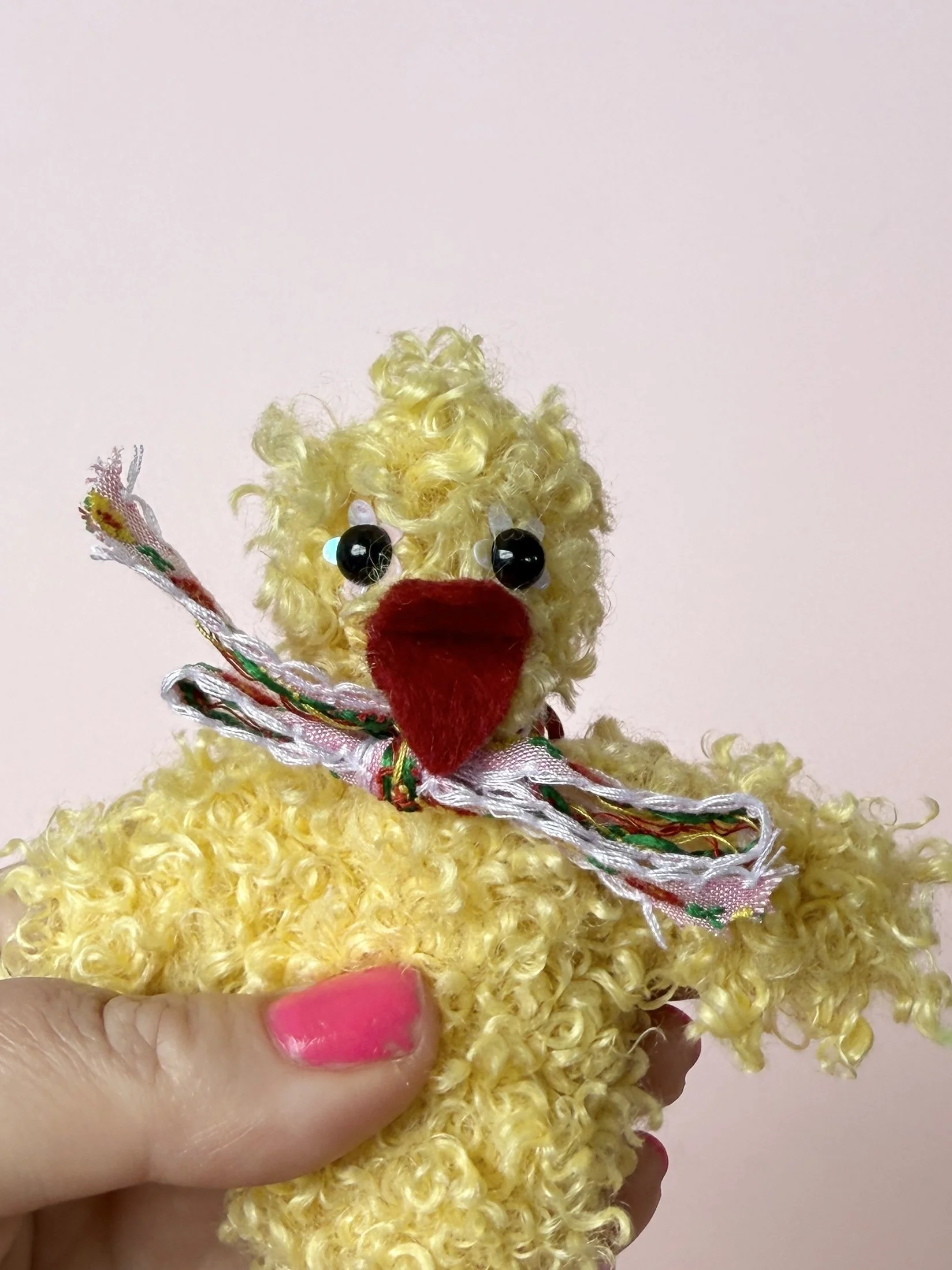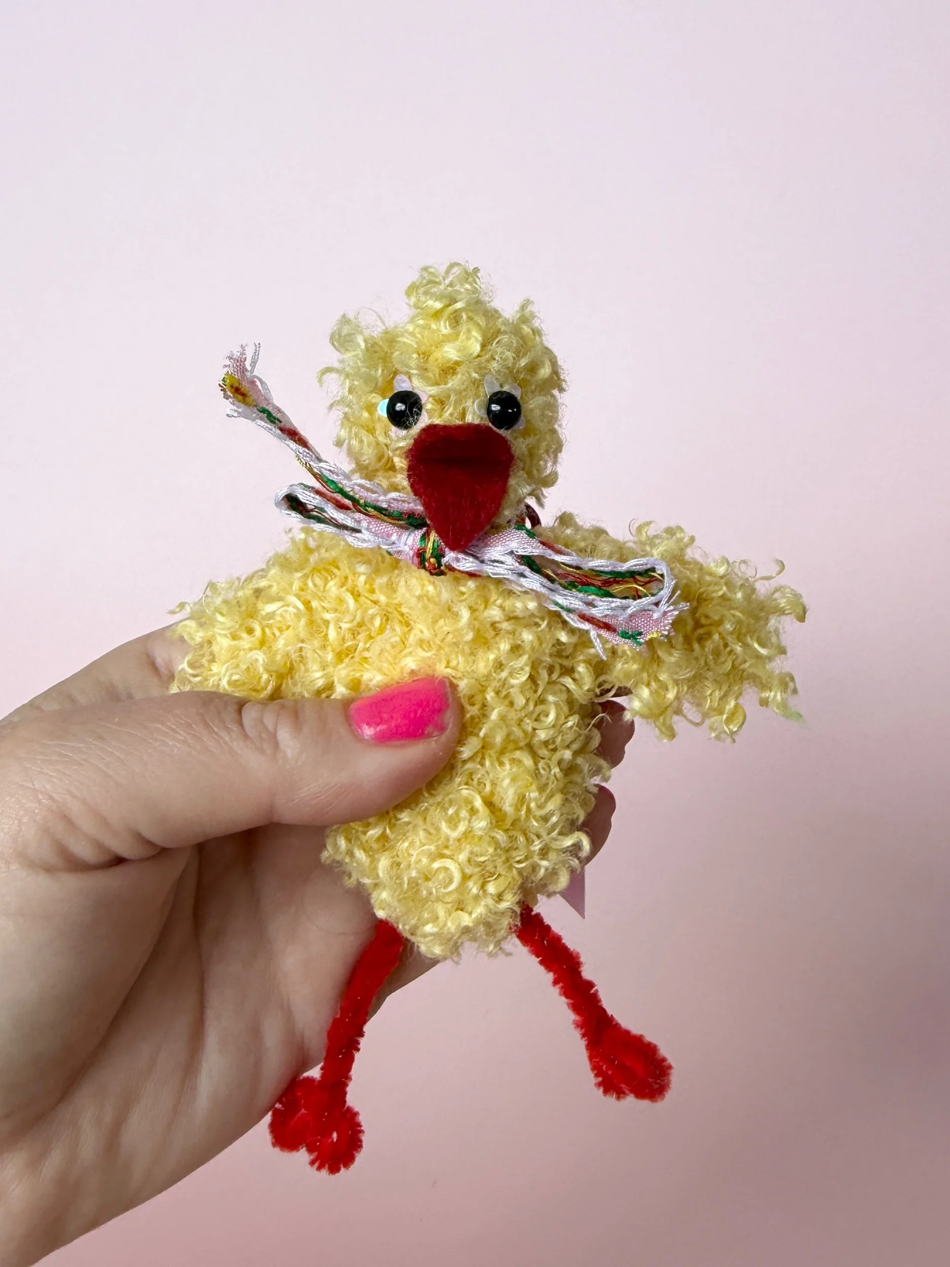Bag Charm Mini Buddy- Boucle Chick with Red Beak