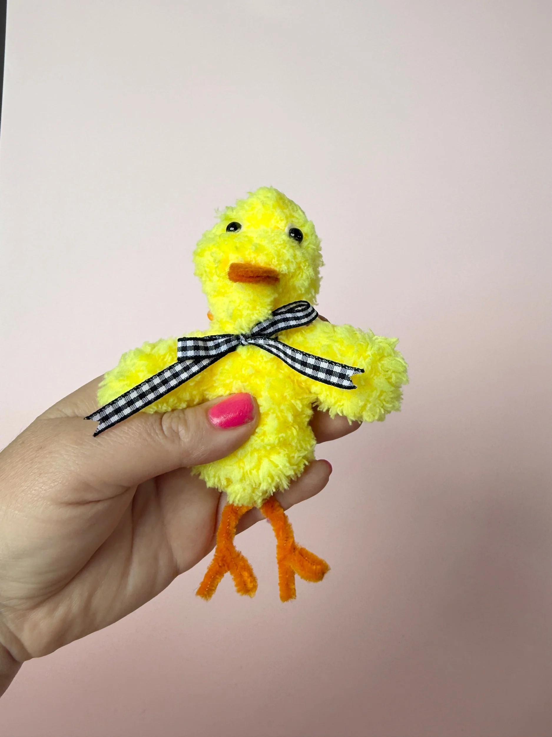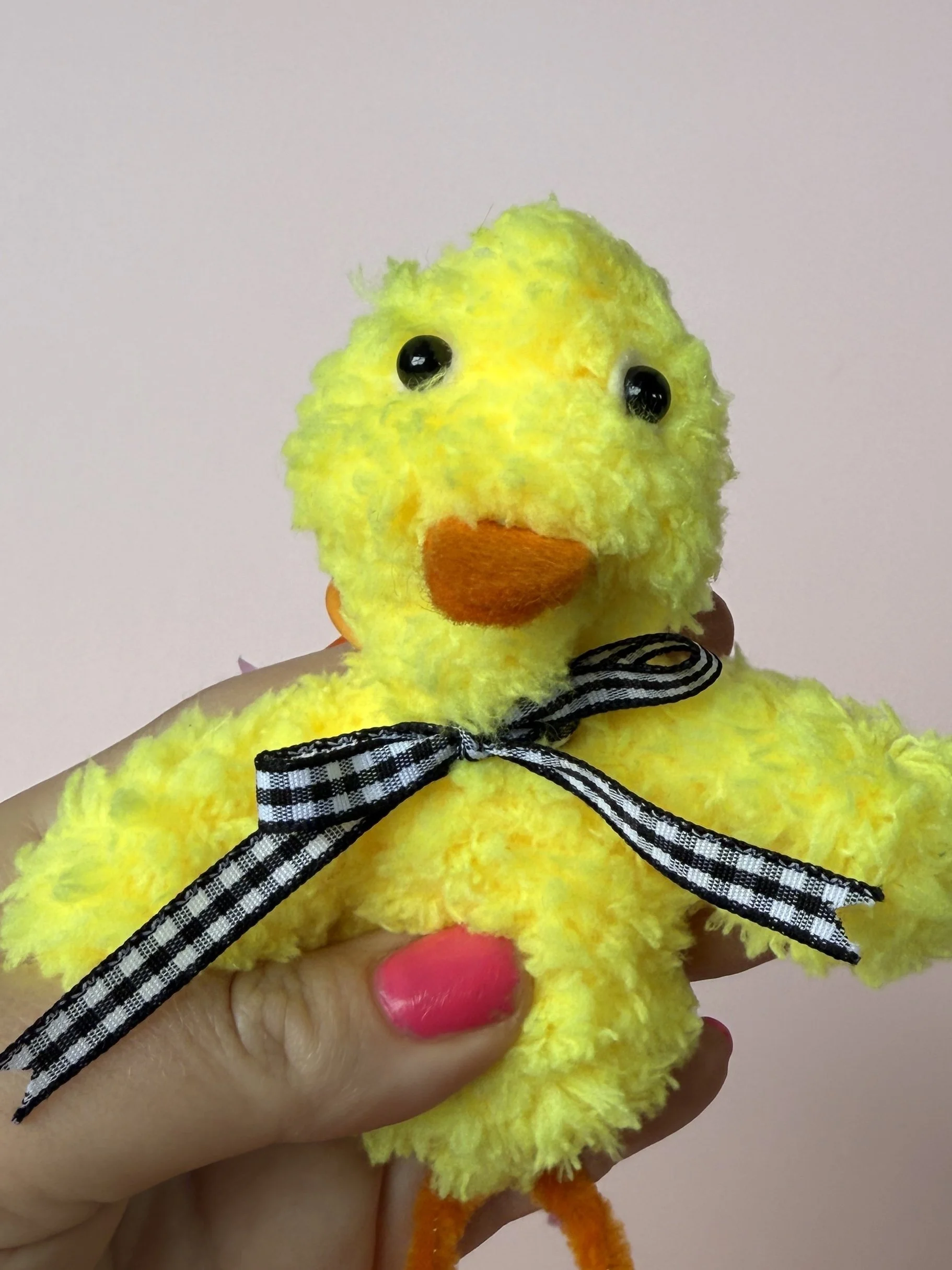 Bag Charm Mini Buddy -Bright Yellow Duckling with Black GingHam Bow