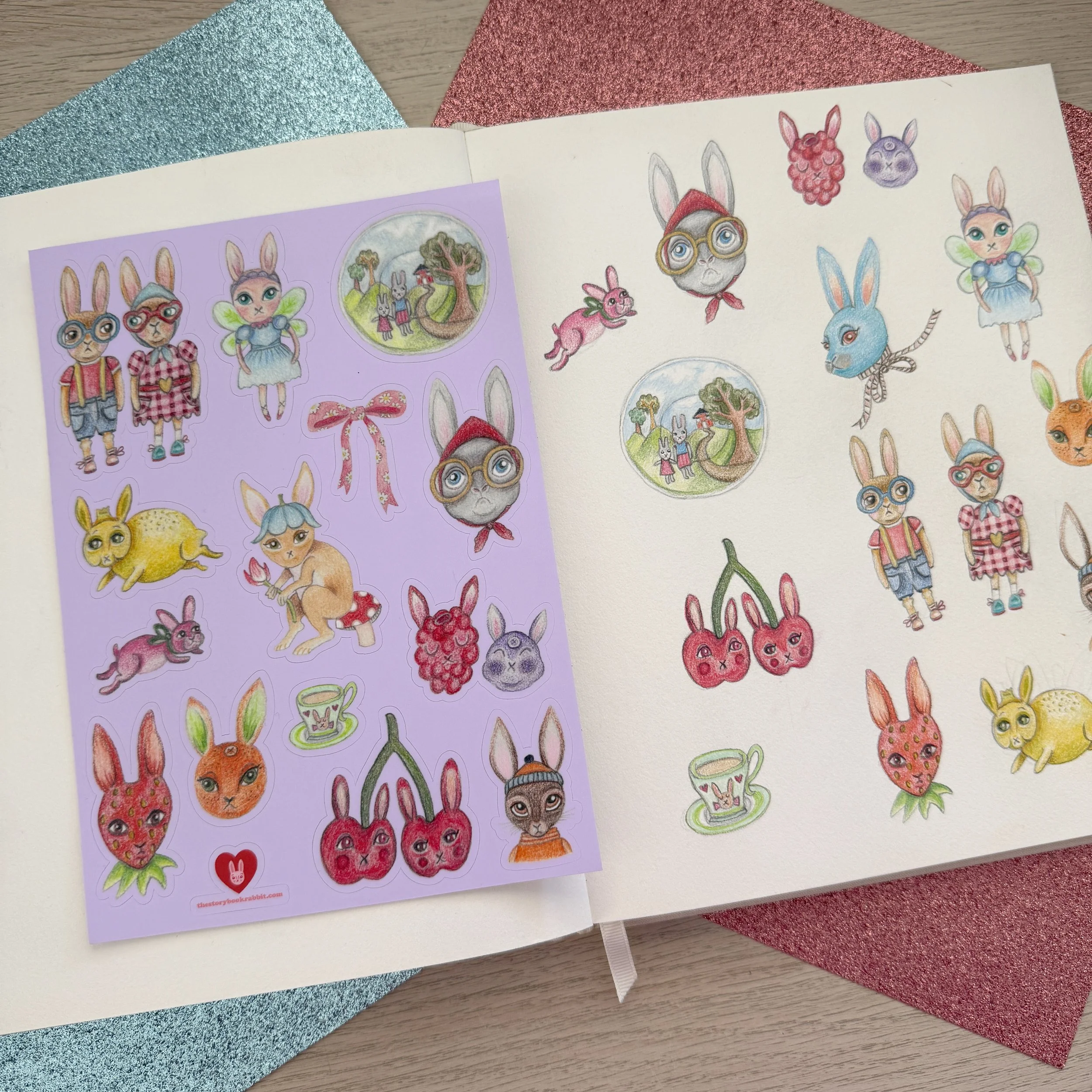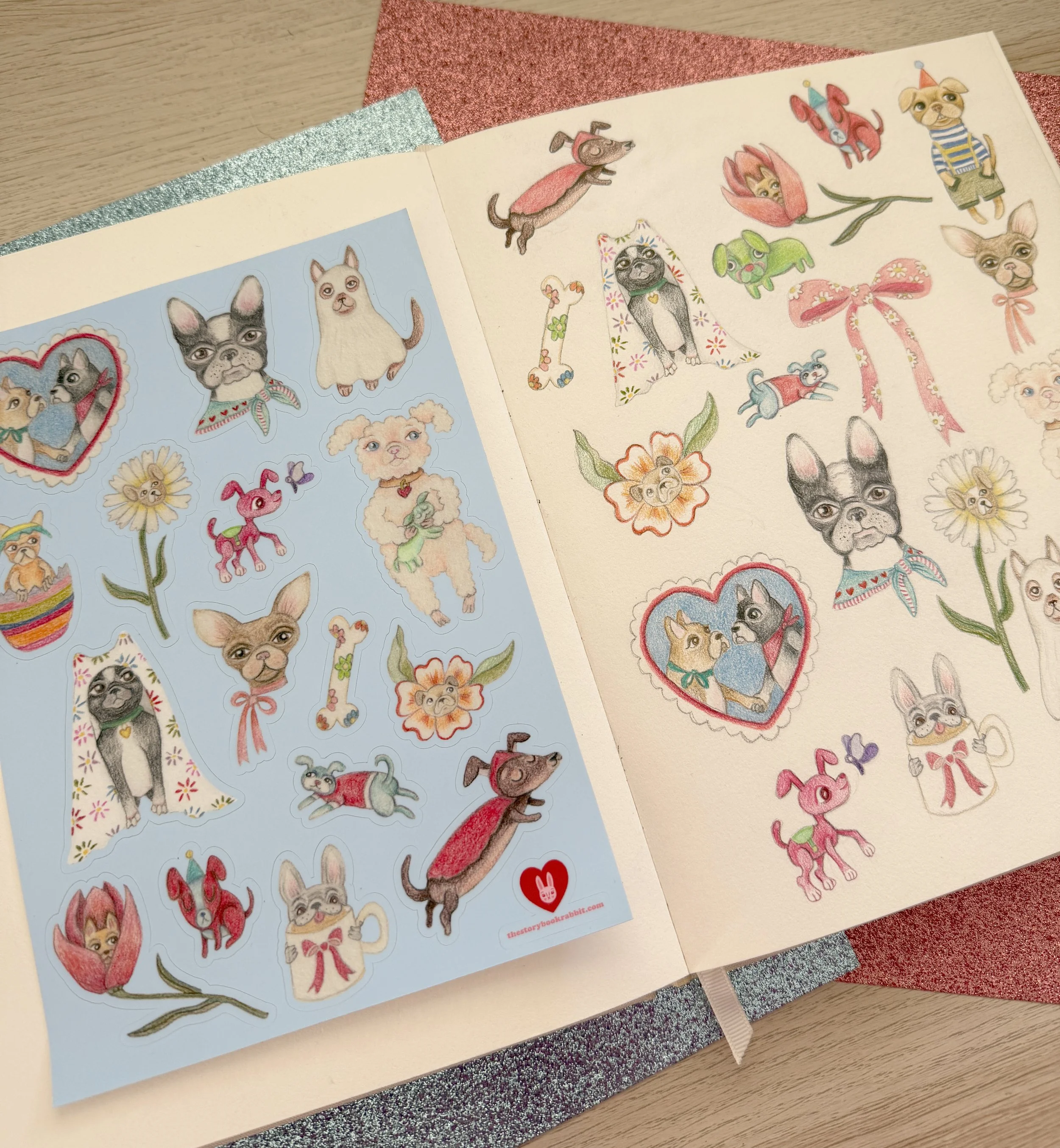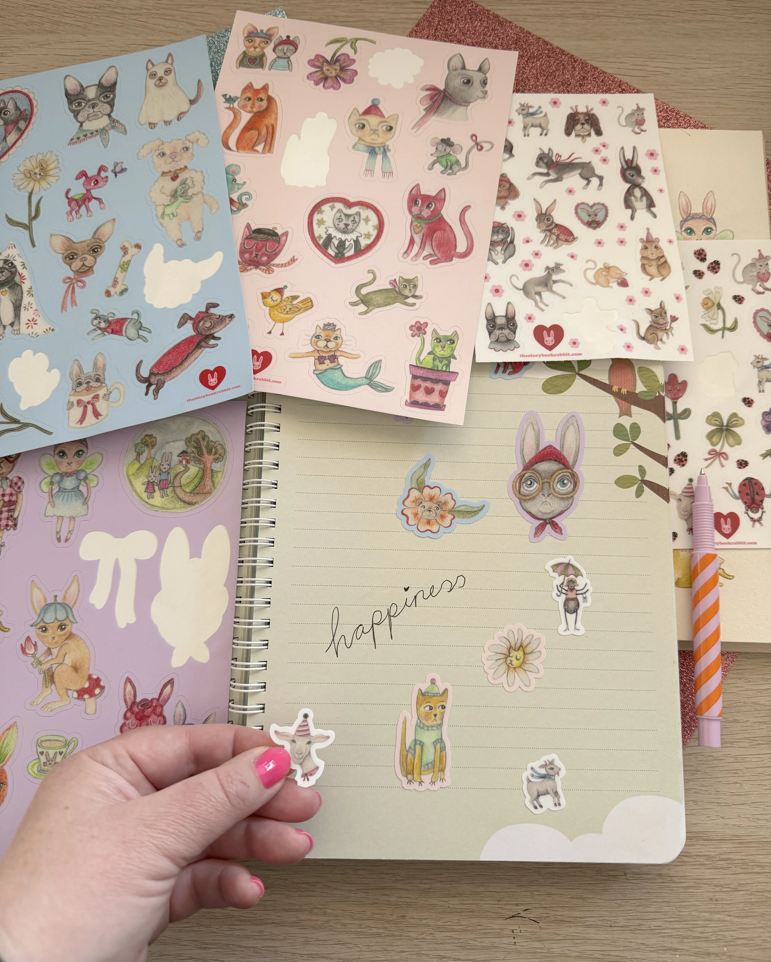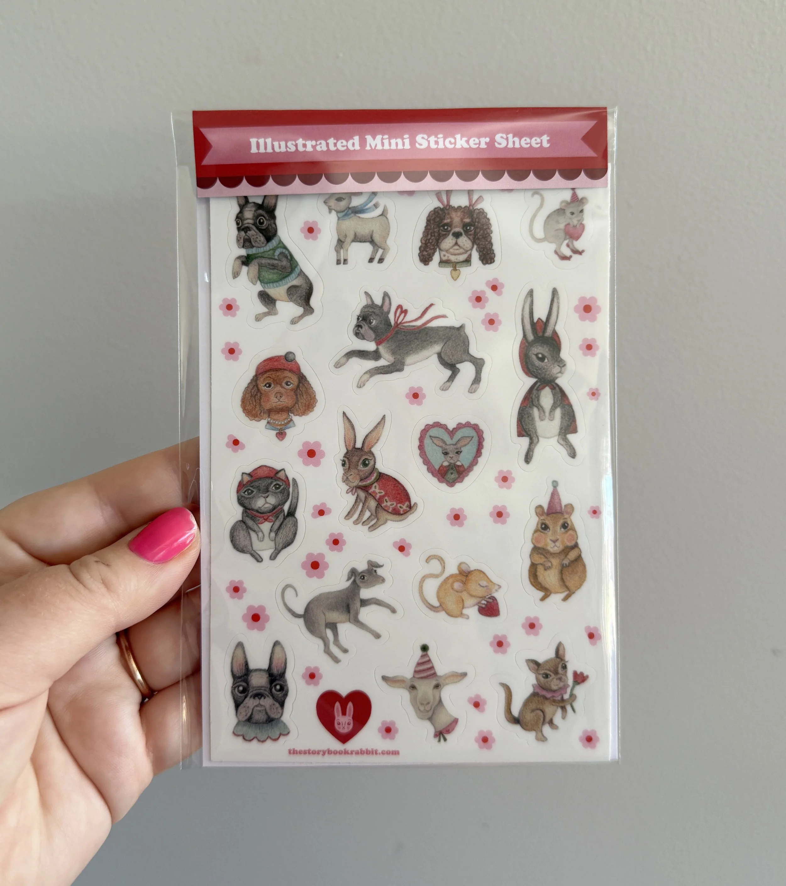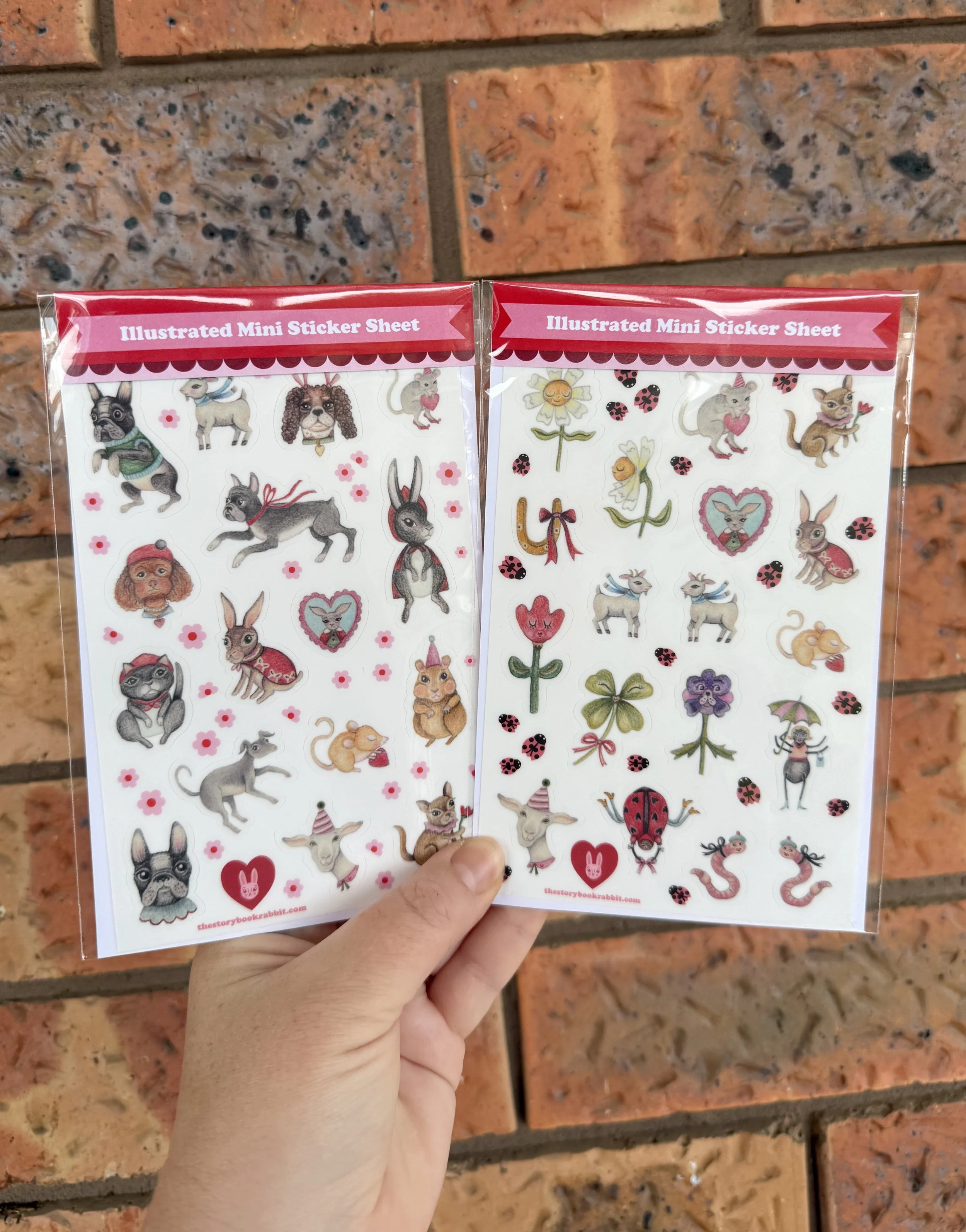 The Storybook Rabbit Illustrated Mini Sticker Sheet - Petite Pets $12.00 The Storybook Rabbit Illustrated Mini Sticker Sheet - Lucky Little Garden Friends $12.00 The Storybook Rabbit Illustrated Large Sticker Sheet - Dogs $17.00 The Storybook Rabbit Illustrated Large Sticker Sheet - Kitties and Friends $17.00 The Storybook Rabbit Illustrated Large Sticker Sheet - Bunnies $17.00 All Three The Storybook Rabbit Illustrated Large Sticker Sheet - Cats, Dogs, Bunnies $45.00 Both The Storybook Rabbit Illustrated Mini Sticker Sheet - Garden Friends and Petite Pets $20.00 The Storybook Rabbit Illustrated Stickers - Pretty Kitties from $5.00 The Storybook Rabbit Illustrated Stickers - A Few Of My Favourite Animals from $5.00 The Storybook Rabbit Illustrated Stickers -florals and buildings from $5.00 The Storybook Rabbit Illustrated Stickers - Shy Bunnies from $5.00